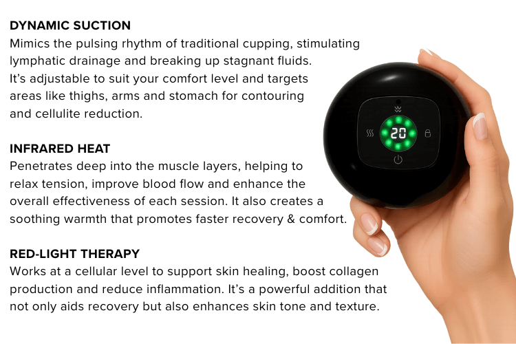 ✔️ Mimics Professional Cupping Techniques – The pulsing suction produces optimal circulation & lymphatic drainage